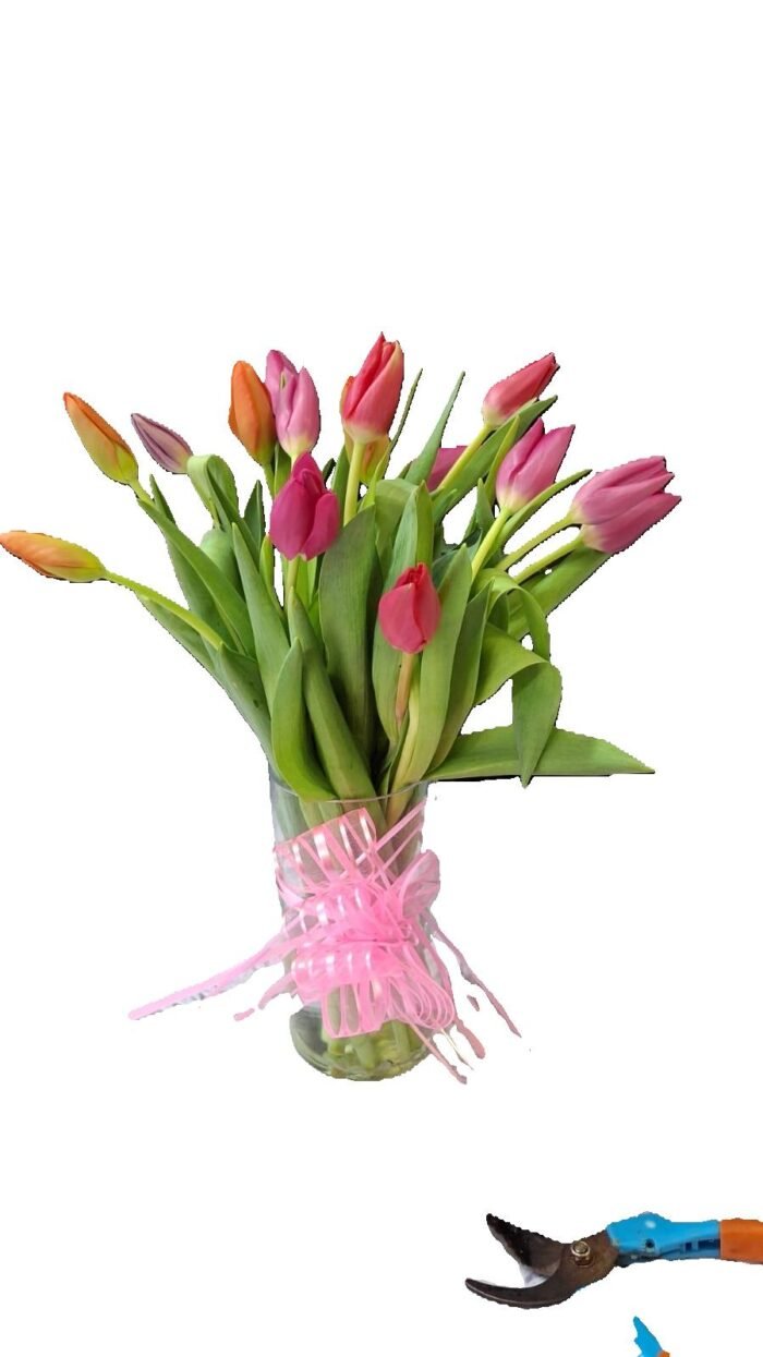 Este bello florero de vidrio contiene 12 tulipanes frescos, elegidos por su elegancia y delicadeza. Su diseño limpio y moderno lo convierte en un arreglo perfecto para regalar o decorar cualquier espacio con un toque de color y frescura.