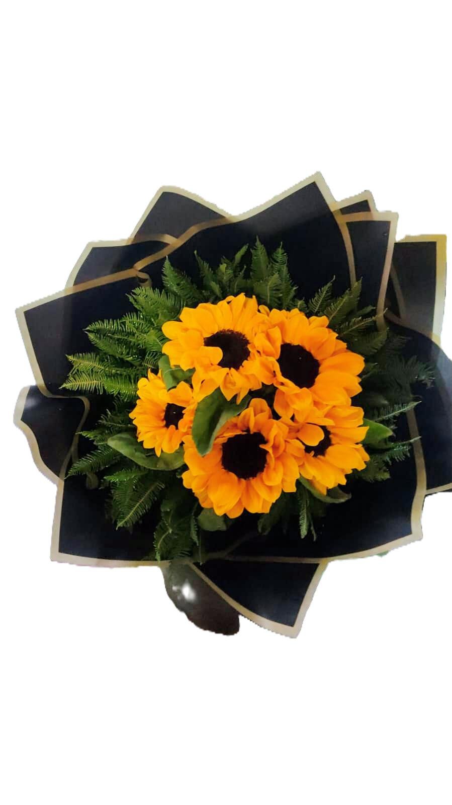 Este ramo es una celebración de la felicidad y el optimismo. Compuesto por 5 girasoles, es la manera perfecta de transmitir un mensaje de adoración, lealtad y buena energía. Cada girasol, con su brillante color y su forma que busca la luz, es un recordatorio de que siempre hay un motivo para sonreír.