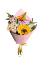 Vibrante y lleno de vida, nuestro ramo con girasol, rosa, gerbera y maules es una explosión de color y alegría que transmite energía positiva y emociones sinceras. El girasol aporta luz y optimismo, la rosa añade un toque de elegancia y sentimiento, la gerbera suma frescura y vitalidad, mientras que los maules complementan el arreglo con textura y naturalidad.